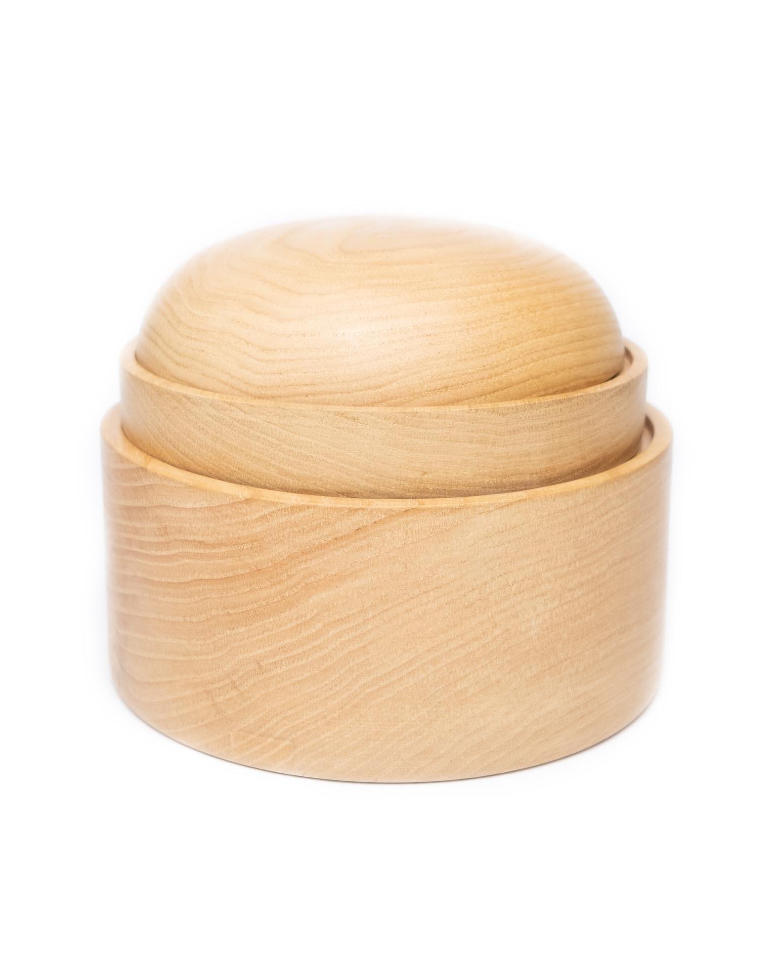 The Istanbul box collection designed by AVLU was inspired by three of the many landmarks of Istanbul: The Galata Tower, Hagia Sophia and Bebek Mosque. Fittingly, each box from the collection carry the name of one of these precious structures. The main objective behind the design of the collection is to symbolize these famous designs through simpler geometric forms, which will also serve as a unique and practical utility. The AVLU Galata and Hagia Sophia boxes provide two smaller sections suitable for storing items such as jewelery or stationery objects, while the Bebek box provides one single larger compartment for storing larger objects. The 18 x 13 cm sized AVLU Ayasofya wooden box should be cleaned by wiping gently using a damp cloth and is not machine washable.