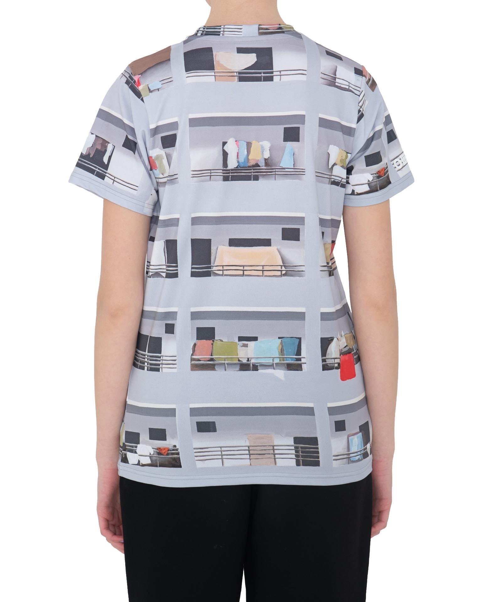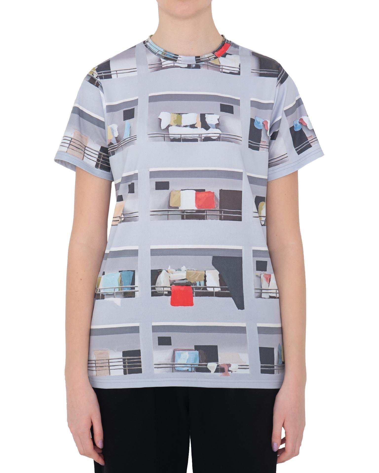 100% polyester t-shirt with a print of artist Emre Kantaşlı’s artwork “Balconies” \n