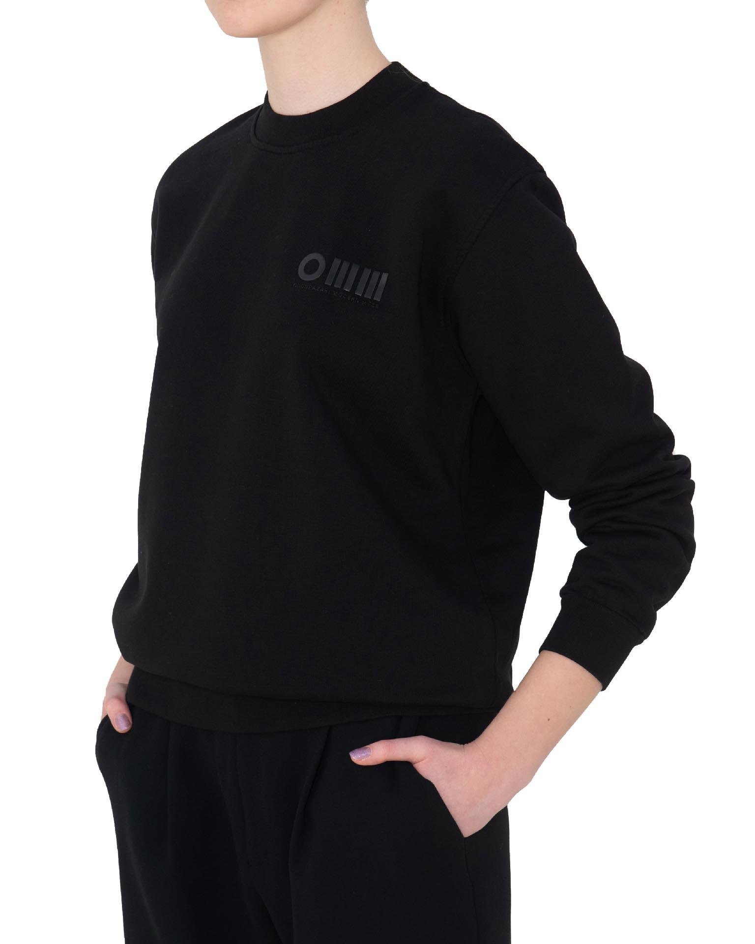 Black unisex sweatshirt with OMM logo injection print, made from 100% cotton raised fabric. \n