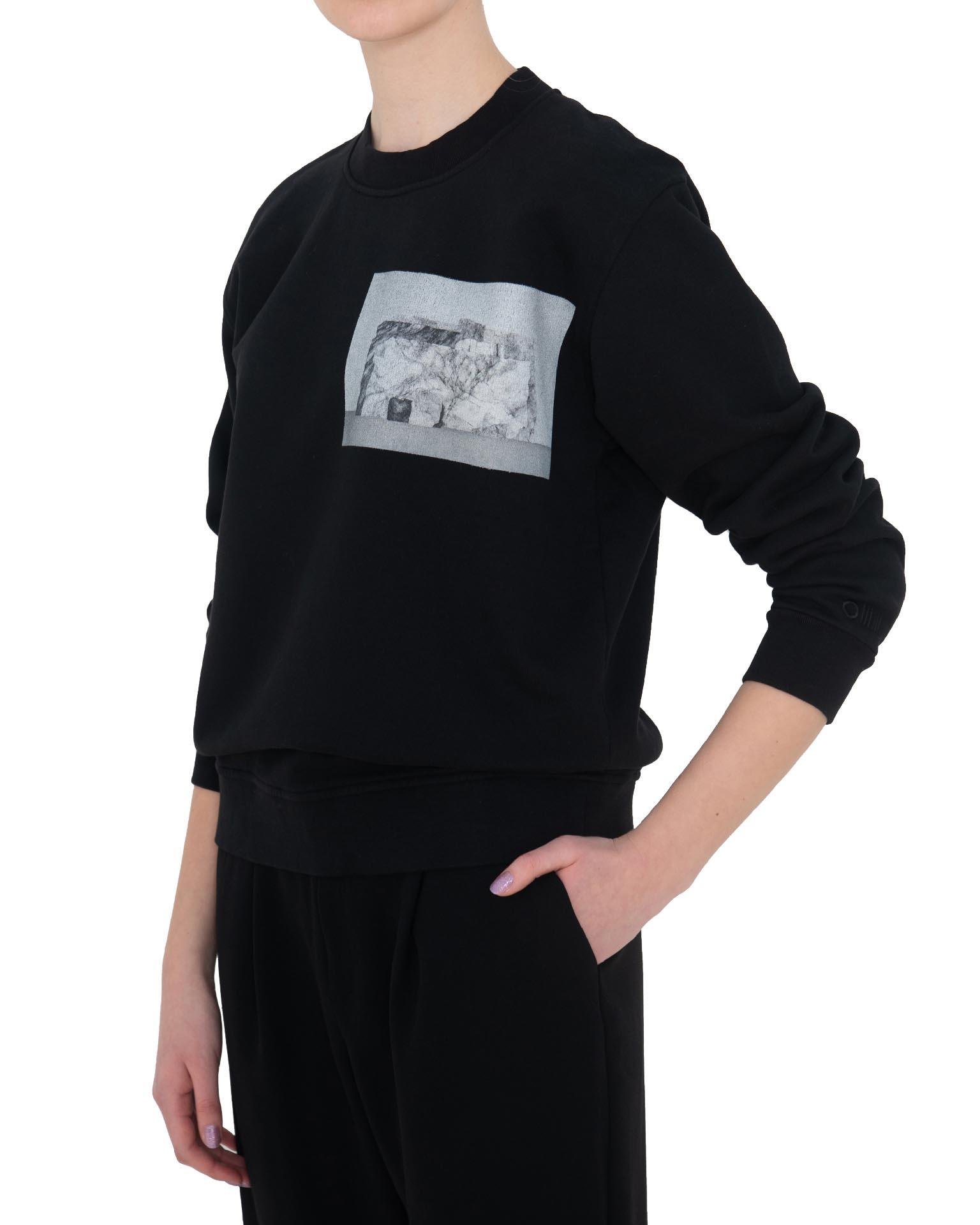 This 100% cotton sweatshirt with a print of the artwork “Historical Connotations on A-Z Axis” by the Italian painter Guido Casaretto, who works on understanding nature and reproducing it in the digital field, adds an artistic touch to your daily life. \n