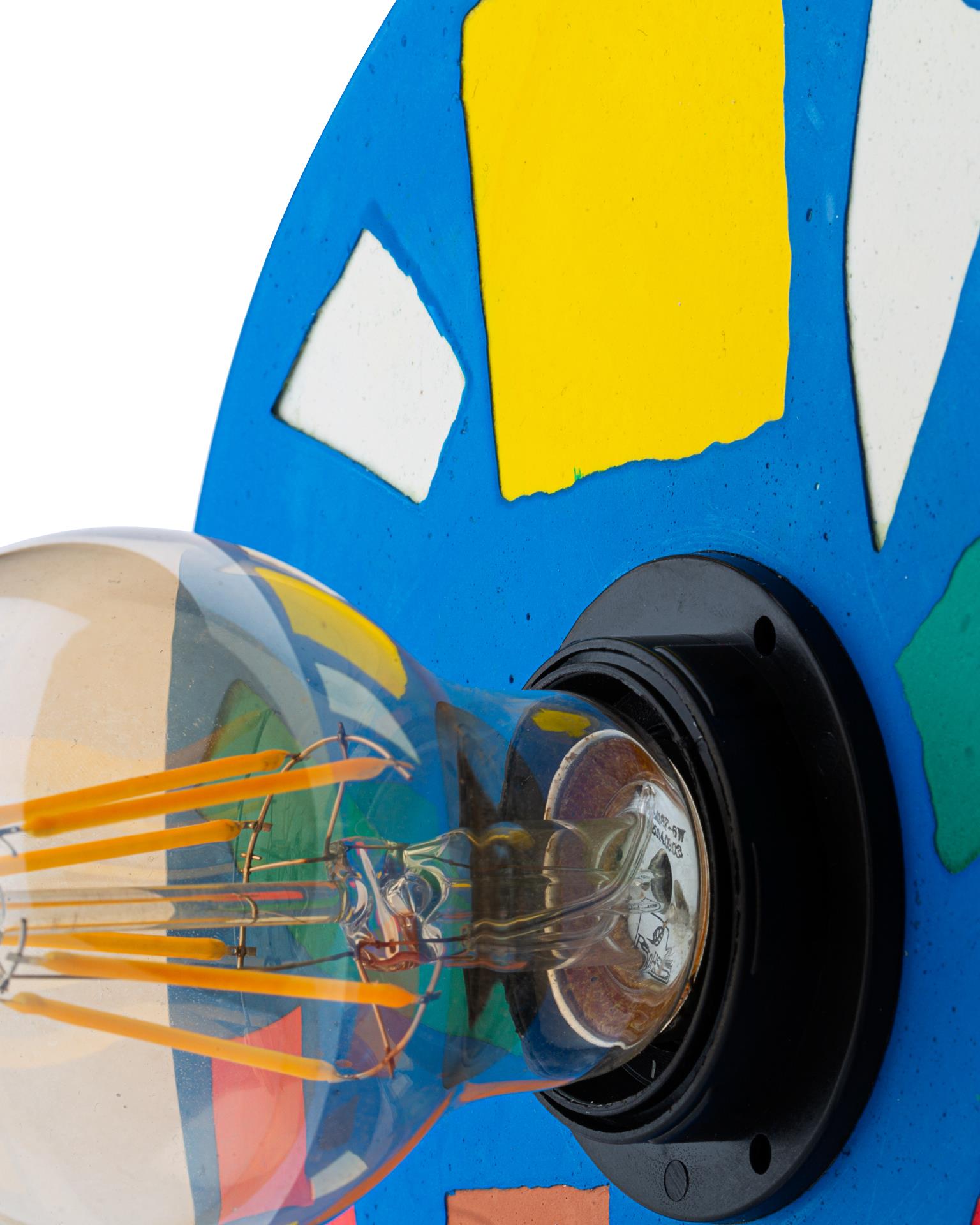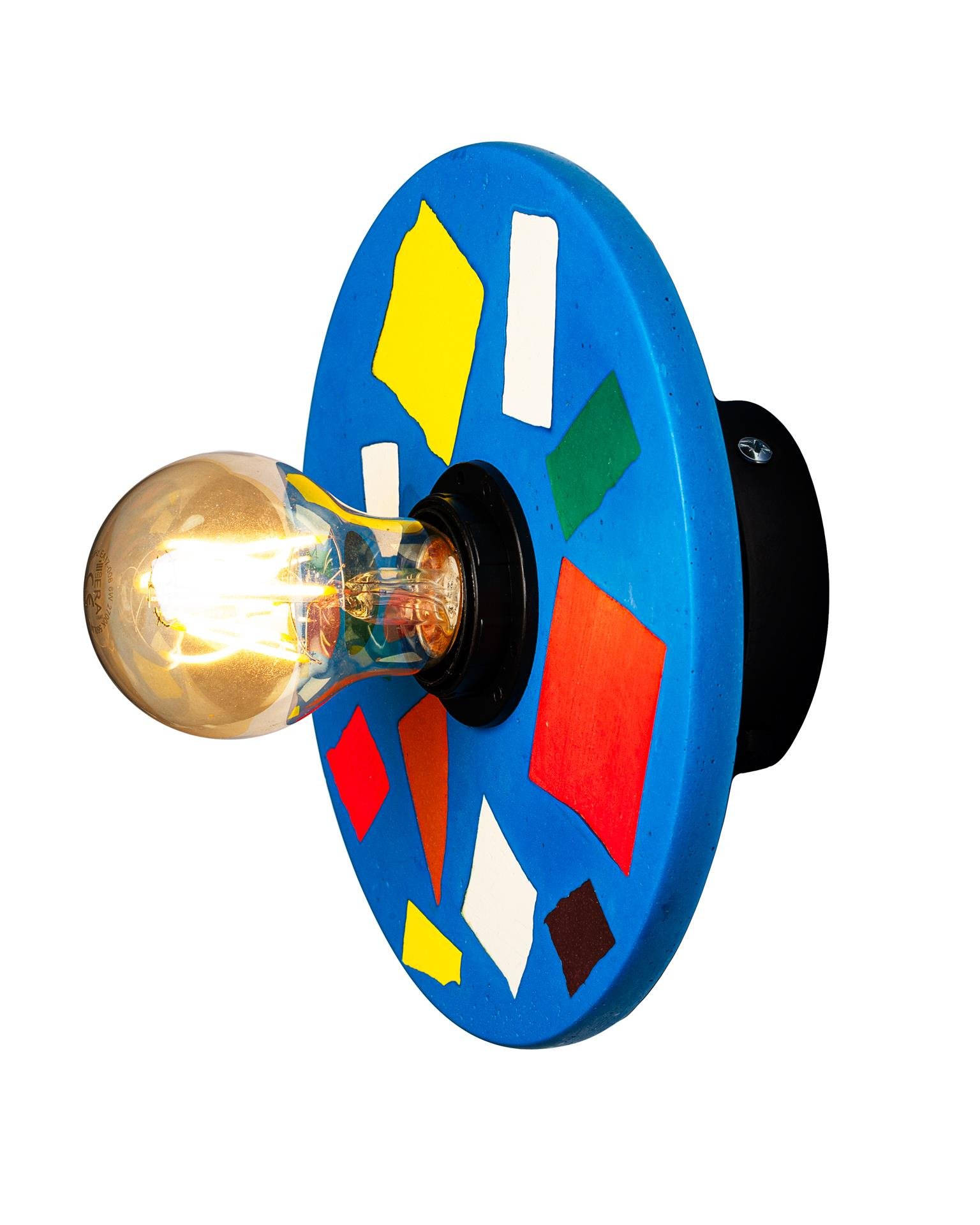 Tehanu Terrazzo brand blue round sconce with piece detail will bring pleasure to your home and office along with light. Handcrafted sconce is also an ideal gift option.