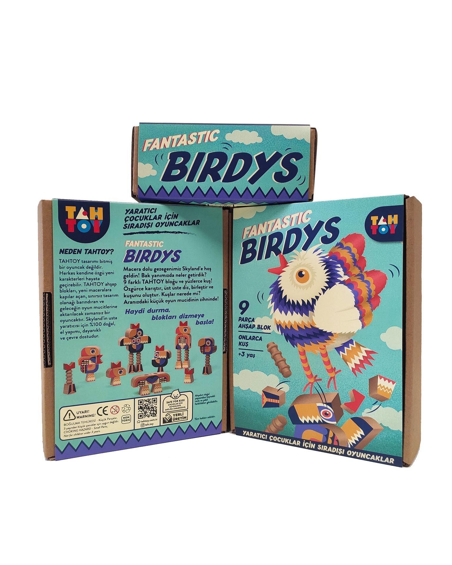 TAHTOY blocks, produced with the motto "Extraordinary toys for creative children," open the door to new adventures with unlimited design possibilities. Made from 100% natural antibacterial beech wood, the blocks offer a healthy and environmentally friendly toy alternative while improving children's creativity, motor skills, and hand-eye coordination. \nTAHTOY Birdys comprises 9 wooden blocks. Not machine washable; the blocks should be wiped with a damp cloth.