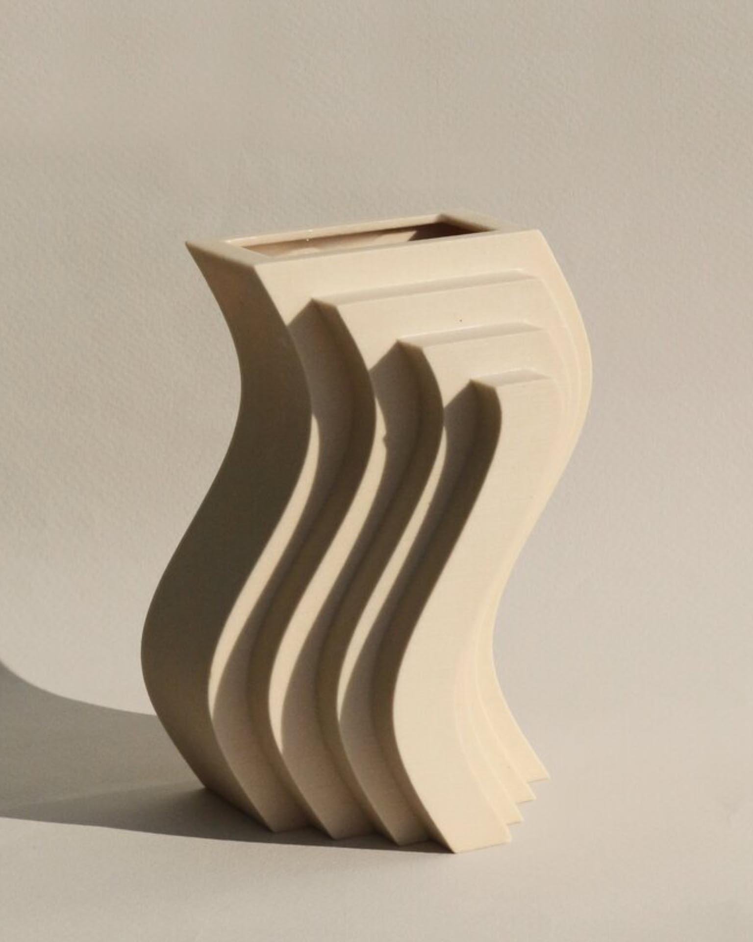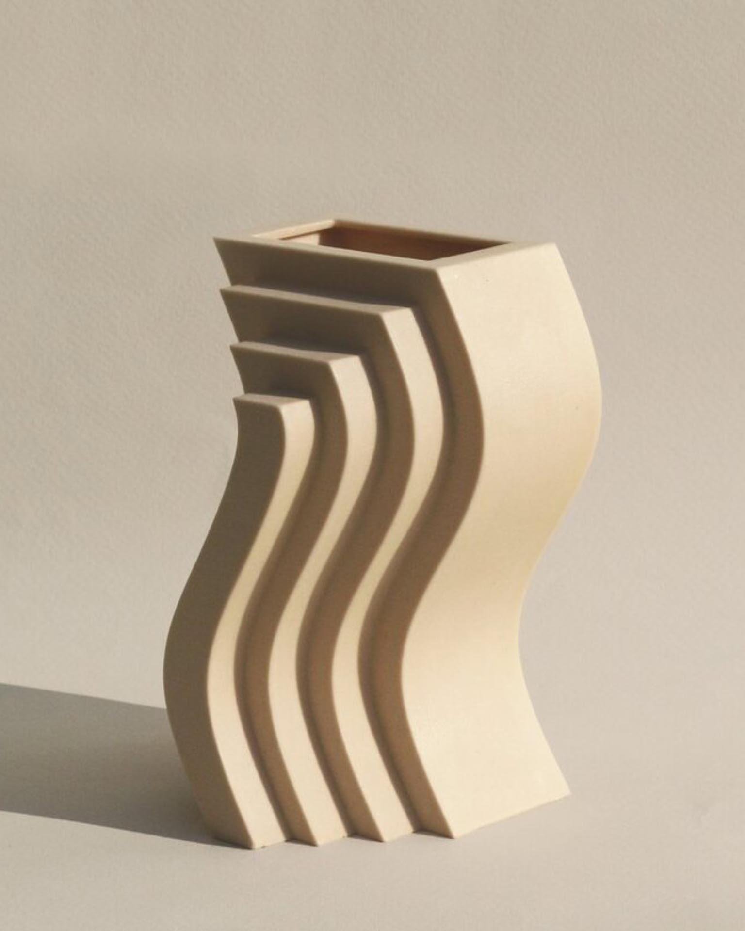 The beige “Wave” vase is one of the sculptural vases designed by the artist Charlotte Taylor for the USA-based brand Unique Board. This product will add a touch of creativity to your spaces. The 3D printed resin vase measuring 14 x 10,7 x 7,6 cm should be cleaned by wiping gently using a damp cloth.